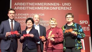 Wir als SPD Baden-Württemberg stehen für gleichen Lohn für gleiche Arbeit. In Kooperation mit der Sozialdemokratischen Partei Europas laden wir jeden interessierten Bürger zu unserer großen ArbeitnehmerInnen-Konferenz ein, um über Gute Arbeit der Zukunft zu sprechen. Mit dabei sind unter anderem Bundesarbeitsministerin Andrea Nahles und der baden-württembergische Wirtschafts- und Finanzminister Nils Schmid. Katja Mast eröffnet die Konferenz mit einem Grußwort. Los geht's am 2.2.16 um 9.30 Uhr in der Filderhalle Leinfelden-Echterdingen.