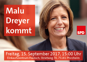 Wenige Tage vor der Bundestagswahl erwarten Katja Mast und die beiden SPD-Kreisverbände Pforzheim und Enzkreis hochkarätigen Besuch in Pforzheim. Am 15.9. wird die rheinland-pfälzische Ministerpräsidentin Malu Dreyer in der Goldstadt zu Gast sein.