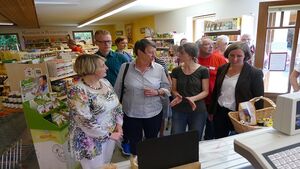 Barbara Hendricks hat auf Einladung von Katja Mast Heimsheim besucht. Dort informierte sich die Bundesumweltministerin über alle Aktivitäten, die vor Ort in Sachen „Faire Trade“ passieren. Treffpunkt war der Biohofladen Gommel. Inhaberin Iris Gommel zeigte dem Gast aus Berlin, wie Faire-Trade vor Ort gelebt wird. Der Familienbetrieb bietet neben Bioprodukten auch Waren an, die nach ethischen und sozialen Gesichtspunkten produziert werden. Zudem wird auch selbst gebacken.
