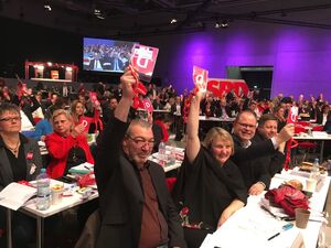 Katja Mast hat auf dem Bundesparteitag der SPD in Berlin eine Ergänzung des Leitantrages, der die Inhalte für ergebnisoffene Gespräche für die SPD definiert, durchgesetzt. Gemeinsam mit zahlreichen Delegierten der SPD Baden-Württemberg und anderer Landesverbände sprach sie sich dafür aus, Kinderrechte ins Grundgesetz aufzunehmen.