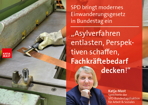 Die SPD-Bundestagsfraktion fordert Klarheit in der Migrationspolitik und hat deshalb angekündigt, dem Bundestag ein modernes Einwanderungsgesetz vorzulegen. „Das Ziel unserer Gesetzesinitiative heißt: Gezielte und intelligente Steuerung der Einwanderung. Das hilft, um unseren Fachkräftebedarf zu decken – also Zuwanderung für Menschen, die in Deutschland dringend gebraucht werden“, so Katja Mast. Positive Effekte für Pforzheim und den Enzkreis erwarte die Arbeitsmarktexpertin mehrere: Eine Entlastung der regionalen Verwaltung und Kommunen sowie frühzeitiges Gegensteuern bei drohendem Fachkräftemangel. Hier würde ein Gesetz helfen, das klare und transparente Wege ermöglicht, wenn Einwanderer Sprachkenntnisse, Ausbildung und Berufserfahrung bereits mitbringen.