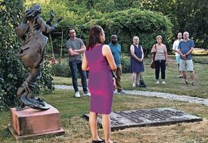 Die Hub hat eine eigene wechselvolle Geschichte als Heilbad und Pflegeheim, so die einleitenden Erläuterungen der Verwaltungsleiterin des Klinikums Mittelbaden Hub, Lilian Heck. Über die Geschichte der Hub vom ehemaligen Thermalbad bis zu den dunklen Jahren der Euthanasie in Mittelbaden informierte Heck ausführlich und gab Erklärungen zu den Denkmalen, heißt es in einer Mitteilung. Die Statue der Assunta der Bildhauerin Gudrun Schreiner mit einer Gedenktafel im Park war erste Station des Rundgangs. Sie erinnert an die Jahre 1940/41, in denen über 500 Bewohnerinnen und Bewohner der damaligen Kreispflegeanstalt nach Grafeneck deportiert und ermordet wurden.