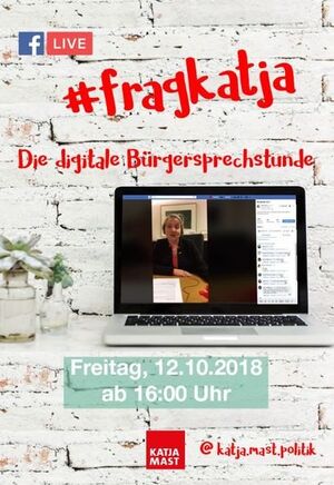 Unter dem Hashtag #fragkatja steht die SPD-Bundestagsabgeordnete Katja Mast bei ihrer digitalen Sprechstunde auf Facebook wieder live Rede und Antwort zu aktuellen politischen Themen.