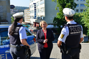 Bürgermeisterin Sibylle Schüssler hat die Bundestagsabgeordnete Katja Mast zu einem Arbeitsgespräch bei der „Regionalen Anlaufstelle Demokratiezentrum“ der Stadt Pforzheim gegen Rechtextremismus und religiös begründete Radikalisierung empfangen. Bei einer gemeinsamen Besichtigung der Räumlichkeiten und dem anschließenden Gespräch erhielt Katja Mast von Claudia Karabensch, Sachgebietsleiterin Jugendsozialarbeit an Schulen im Jugend- und Sozialamt der Stadt Pforzheim, und Mohamed Zakzak von der Regionalen Anlaufstelle Demokratiezentrum Einblicke in deren Arbeit, informierte sich über die Herausforderungen vor Ort und tauschte sich im Dialog mit den Verantwortlichen der Regionalen Anlaufstelle Demokratiezentrum aus.